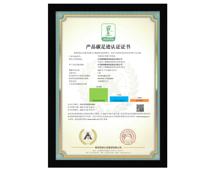 產(chǎn)品碳足跡認(rèn)證證書(shū)